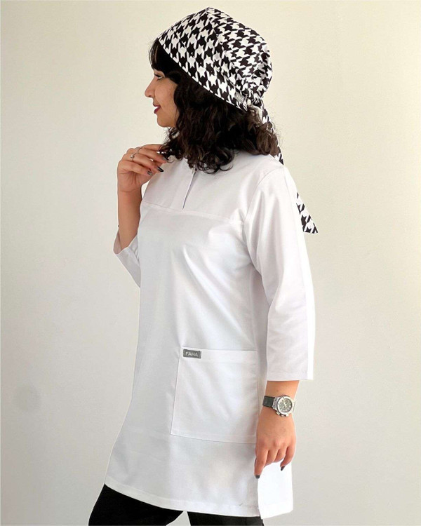 اسکراب بدون شلوار زنانه مدل الیت – روپوش پزشکی سفید | تترون ۱۹۰ گرم، تنخور راحت