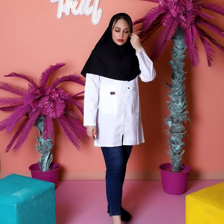 روپوش پزشکی زنانه دخترانه سفید زیپدار دکمه دار کد۱