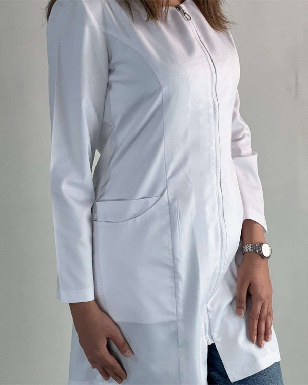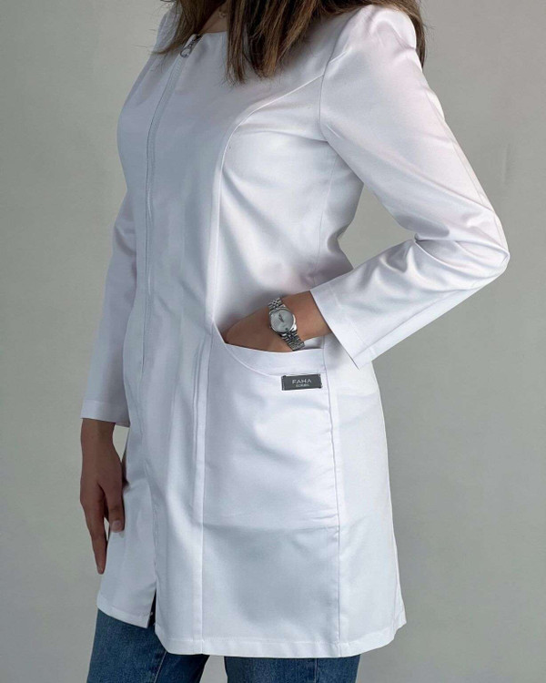 روپوش پزشکی سفید زیپدار زنانه برند فاها – مدل زیپی