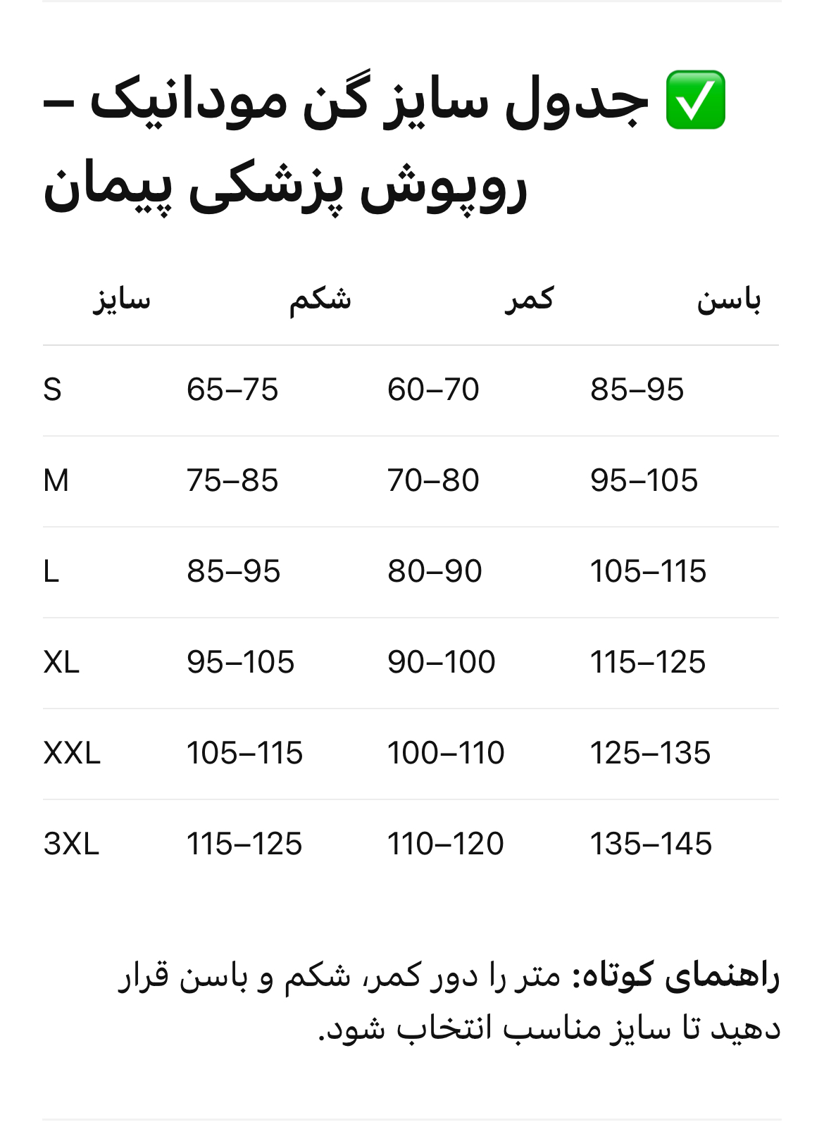 - پشتیبانی سایزبندی: راهنمایی کامل برای انتخاب سایز مناسب.